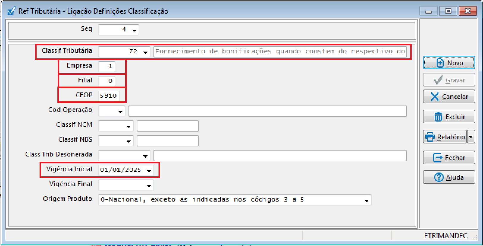 Cadastrar - Ligações x Definição cClassTrib para Bonificação¶